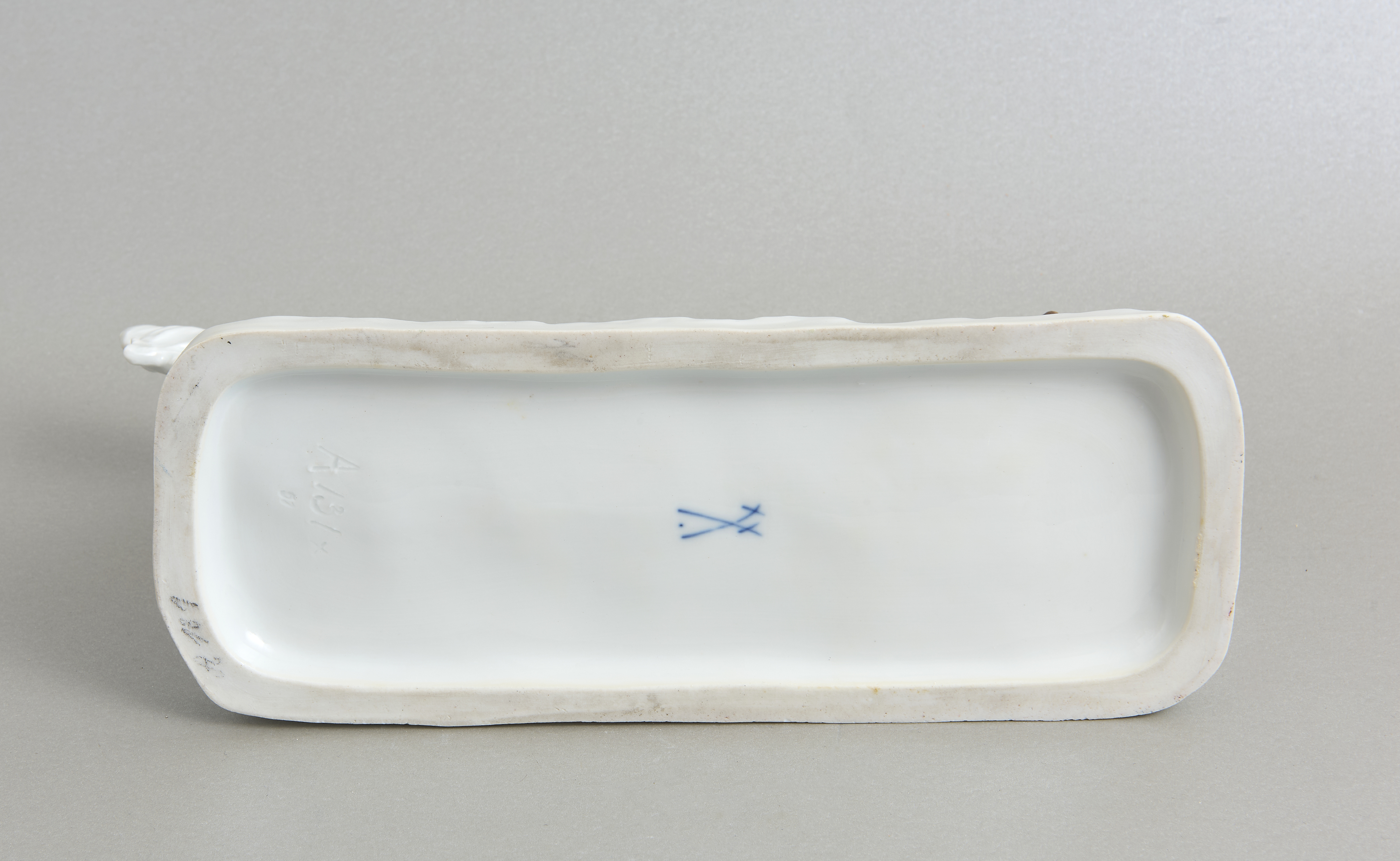 1. Wahl, Pfeifferzeit, Modellnummer A131, unterglasurblaue Schwertermarke, ein Ohr gebrochen, zweites Ohr restauriert. L 26 cm