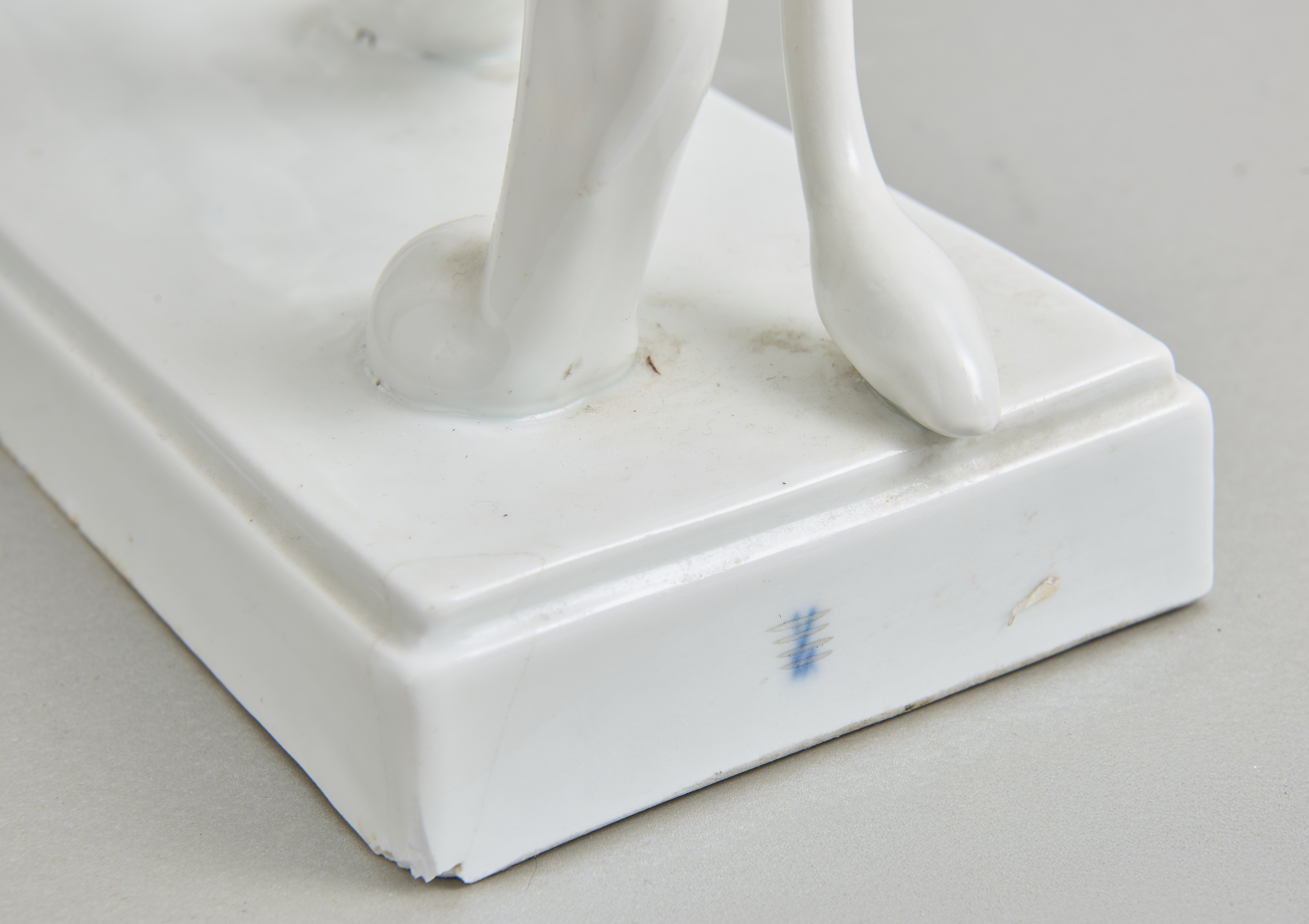 4. Wahl, Entwurf August Gaul, rückseitig unterglasurblaue Schwertermarke, Beschädigungen am Stand, Modell A 1054, L 45 cm