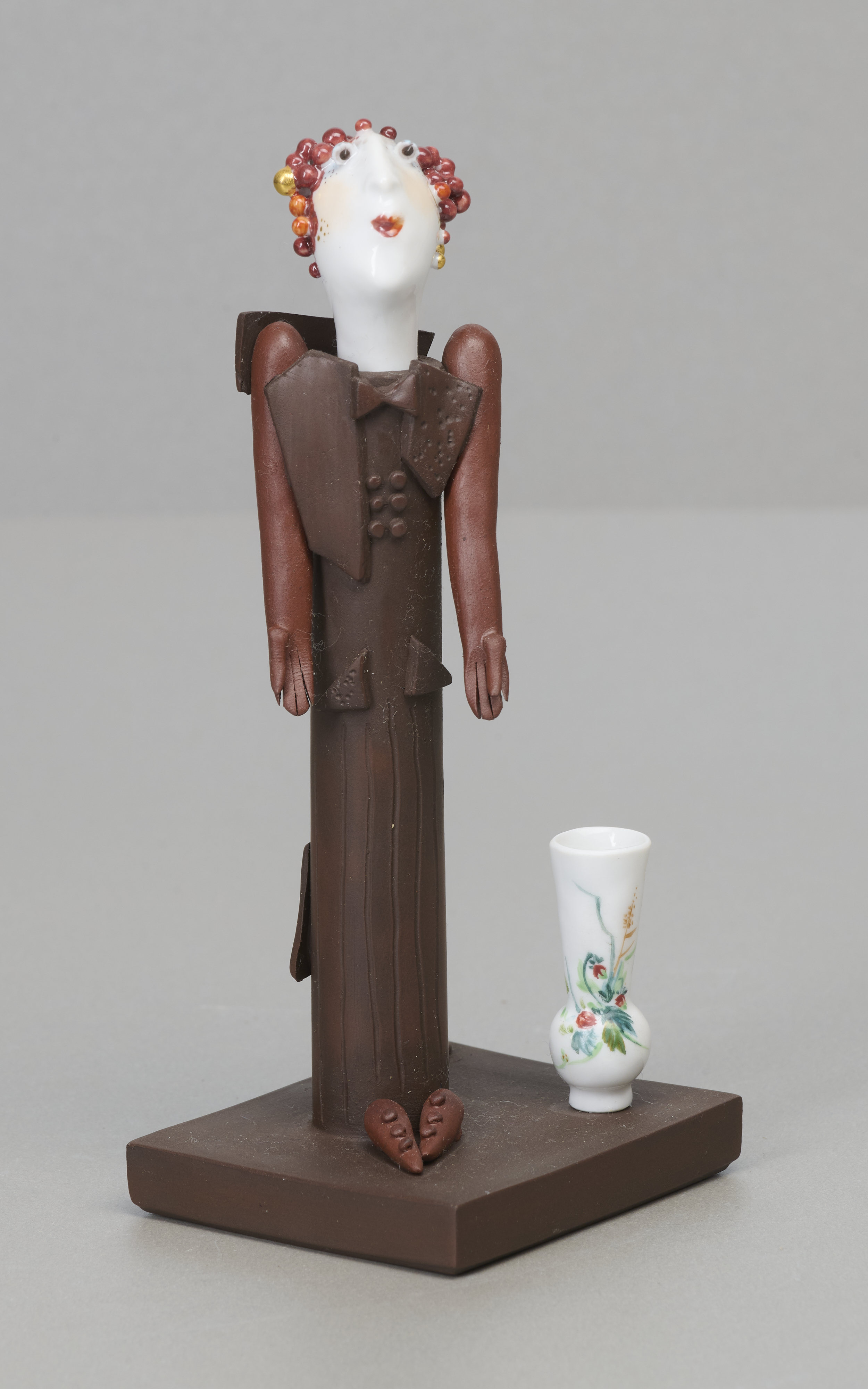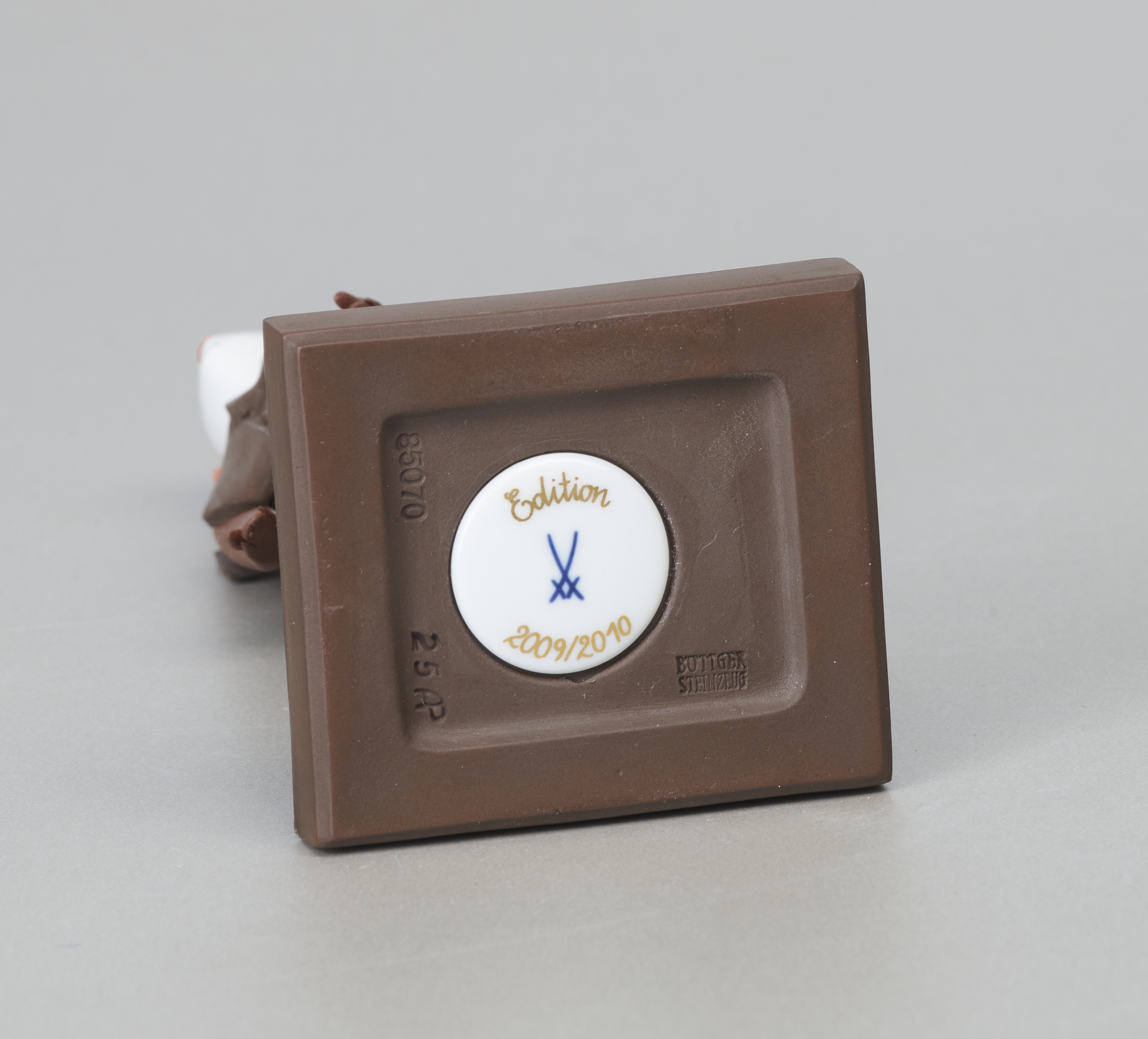 Meissenfigur, der Sammler, Entwurf Silvia Klöde, unten Plakette mit unterglasurblauer Schwertermarke, Edition 2009/2010, teils Böttgersteinzeug, H 15,5 cm